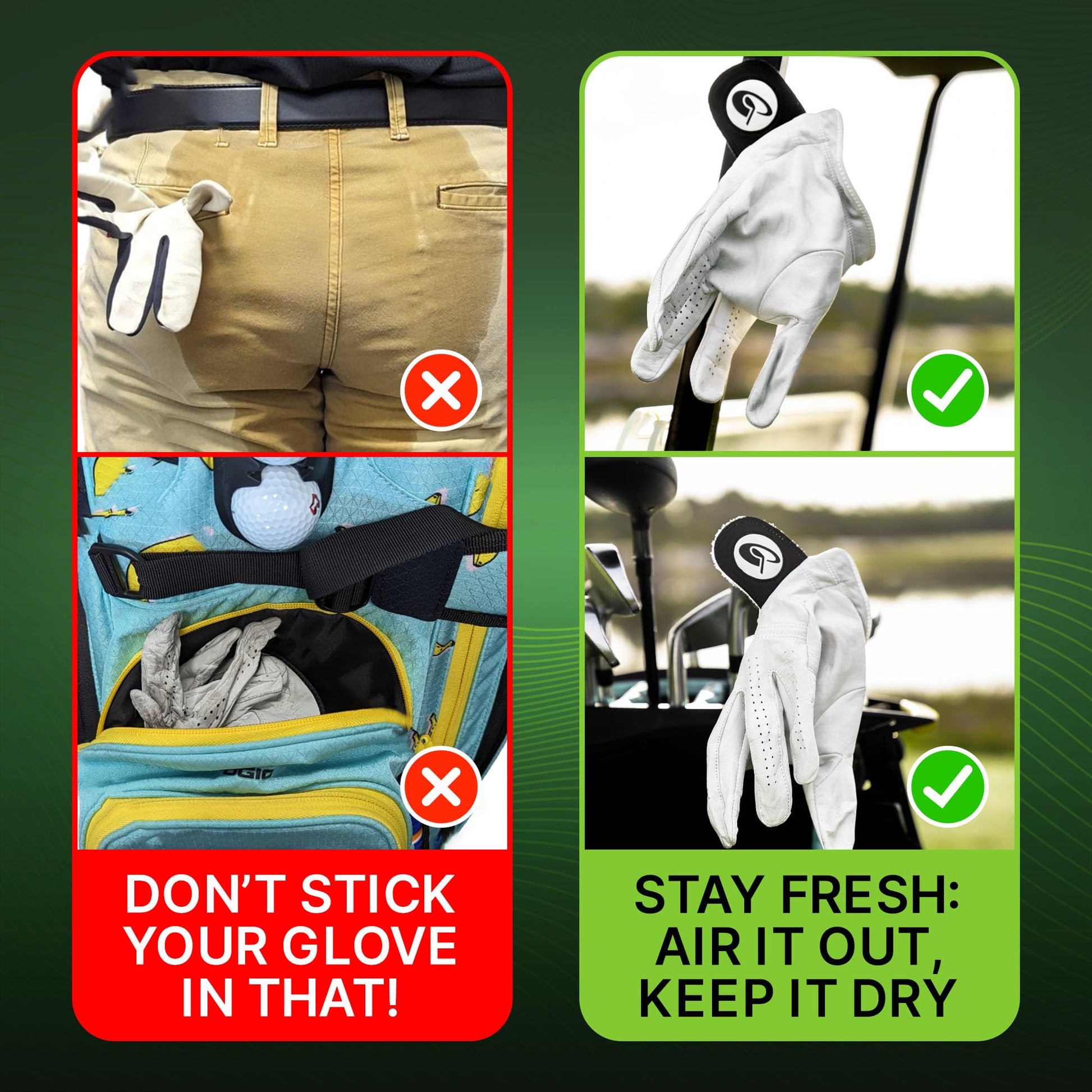 - Innovative Magnet in Strap: Our patented golf glove features a built-in magnet in the strap, allowing you to easily hang it onto golf carts or clubs between shots. Say goodbye to storing a sweaty glove in your pocket or bag!